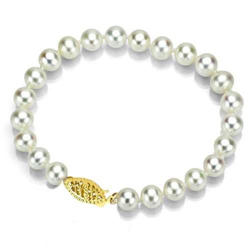 -. Title : 14k Yellow Gold 6.5-7mm Handpicked AAA White Akoya Cultured High Luster Pearl Bracelet