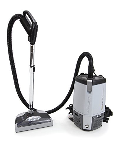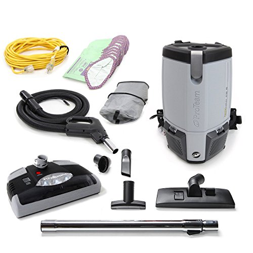 This is the Brand new 2014 ProTeam ProVacs FS6 with the PRO KIT attachment set, which includes a durable and powerful electrical power nozzle / head. This power head is one of the best heads in the industry, and can handle any job. Features of this power nozzle include: Adjustable height for different types of floors, High output L.E.D. head lights rated for 20,000+ hours of use, soft rubber bumper to protect walls as you vacuum, a strong reinforced brushroll with a "no slip" belt for longer life, and a convenient on/off switch so you can easily go from carpet to hard wood with the flick of a switch so you do not have to switch tools! The GV power nozzle and tools are not covered under the ProTeam warranty. Newest model, with redesigned shape for a more comfortable fit on your back. The ProVac vacuum is Pro-Team's commercial/industrial backpack vacuum. The ProVac pro kit includes: Electrical power head with powerful brushroll and high output L.E.D. head lights, adjustable length extension wand 50' cord, 12 paper filter bags, 2 cloth filter bags, Combination floor tool with retractable brush for use on hard wood and carpet, Crevice, Duster, and Upholstery tool. The ProVac comes with a 5 year motor warranty on the ProTeam backpack canister. The ProVac is the only back pack vacuum tough enough to last in the restaurant industry with a five-year motor warranty. The nine pound ProVac is also ergonomically designed and easy to maintain and use. Studies from an independent laboratory comparing upright and backpack vacuum use have proven that operators using back packs vacuums: expend HALF the physical energy and perceived effort. Vacuum in HALF the time. These vacuums are ideal for cleaning commercial-grade carpeting, hard floors, chairs, sofas, blinds, stairs, and reaching up to clean heat and air conditioning vents as well as over door and window trim. There are 3 filters to protect the motor from grease and dirt. Sound mufflers aid in quiet operation.Feature
