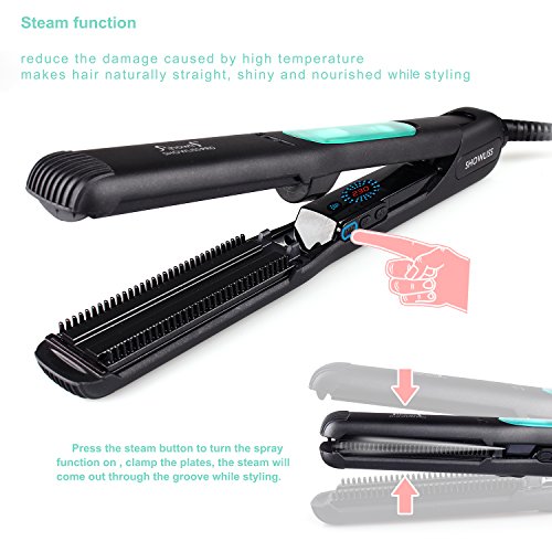 ACTIVATE STEAM FEATURE: This hair straightener is designed with newest steam function to straighten thick or coarse hair and reduce the damage by the high temperature. OTHER SMART FEATURES: