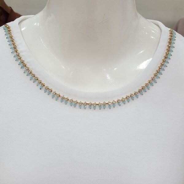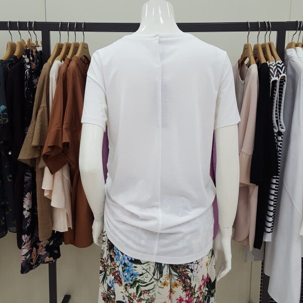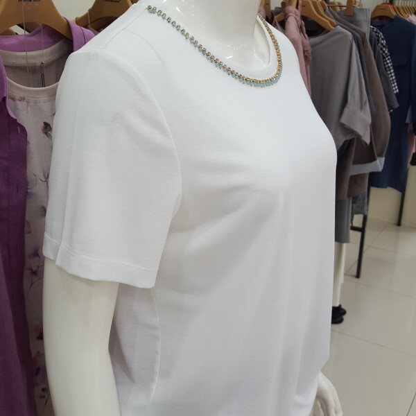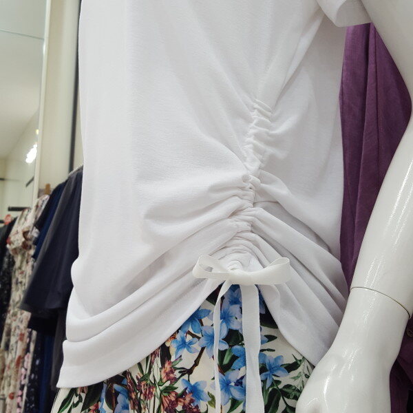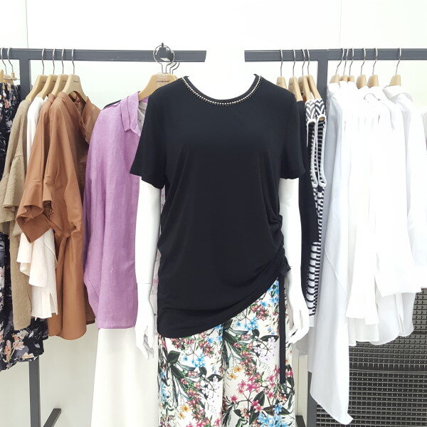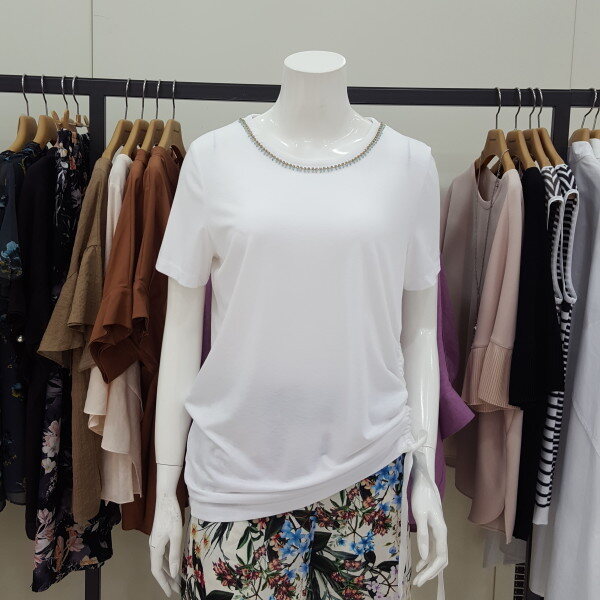 반짝반짝 비즈 라운드 티셔츠입니다.허리선 셔링이 포인트입니다신축성