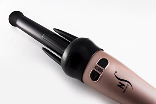The Herstyler 360 Spin Styler is unique, because it works with your hair, not against it. You just put some hair in the center of the chamber. Your hair is automatically drawn in to the ceramic tourmaline barrel and out comes perfectly curled hair. Just wrap your hair around the barrel for loose waves, or use the teeth for a tighter curl. This automatic curling iron even comes with a left /right button so you can control the direction of the rotation, as well as the curl type.