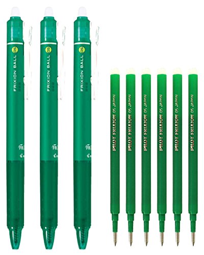 -. Title : Pilot FriXion Ball Knock Retractable Erasable Gel Ink Pens, Extra Fine Point 0.5mm, Green Ink, 3 Pens & 6 Refills Value Set