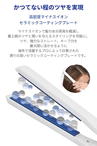 Areti Versatile Straight Hair Iron with Negative Ion and ability to Curl Ultra Slim 15mm (0.6inch) Plate White (Blue Plate) i628BL