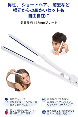 Slim 15mm(0.6inch) high density ceramic plate make it easy to style front hair and short hair