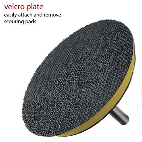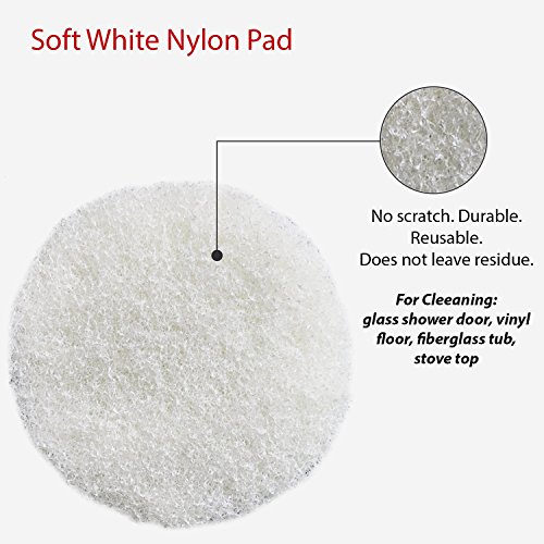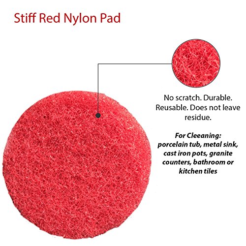 -. Feature : ✔ SO CLEAN SO FAST - This kit will turn your ordinary drill into a super power kitchen & bathroom scrubber. Thanks to the rotary power of your drill and the stiff nylon pads, you can clean soap scum, water spots, grease and stains effectively white cutting down cleaning time by 5X . (Drill not included) / ✔ NO SCRATCH, MULTI-PURPOSE CLEANING SUPPLIES Nylon non-abrasive pads included with two level of stiffness. White pads are softer with similar stiffness as Scotch-Brite, suitable for cleaning glass shower door, vinyl floor, fiberglass tub, stove top. Red pads are more stiff, suitable for cleaning porcelain tub, metal sink, cast iron pots, granite counters, bathroom or kitchen tiles. / ✔ IMPROVED DURABLE DESIGN Made of high quality nylon, the pads are reusable and do not leave residue pieces during cleaning. Both sides of each pad are attachable to drill plate adaptor helping to double its use. The pads are made slightly larger than the drill plate, hence the outer edge of the pads let you get closer to edge of the wall and tile grout during cleaning. / ✔ FITS MOST DRILL The drill plate comes with 1/4" round drill bit which fits most drill (drill not included). / ✔ PERFECT FOR BUSY PEOPLE Thanks to drill scrubber pads, many people have found kitchen & bathroom cleaning less of a chores and more fun, including people who cannot afford to spend hours cleaning. No more manual scrubbing!