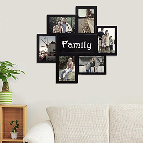 -. Title : Adeco Decorative Black Plastic "Family" Wall Hanging Collage Picture Photo Frame, 4 x 6-Inch