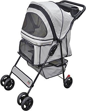 Large storage basket and cup holders to keep toys, treat , and water bottles handy.