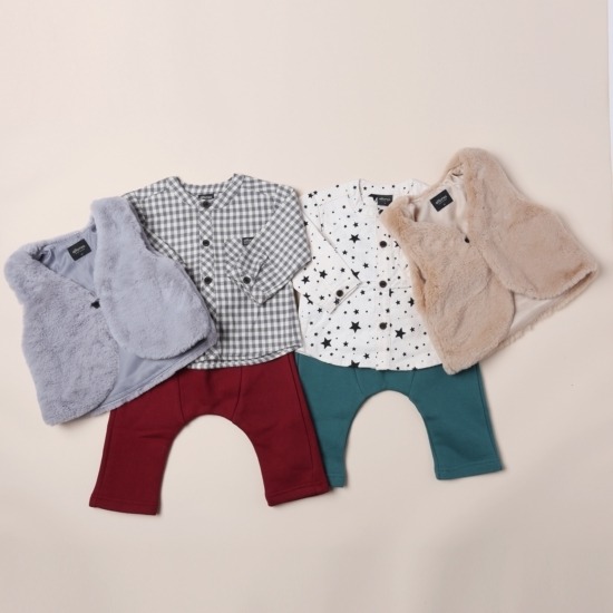 fur조끼와 우븐셔츠,쭈리기모소재의 배기바지와 세트구성시크한칼라감으로 특별한날 외출용으로도 좋고 선물하기도 좋은 아이템