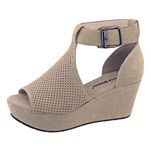 Binding : Apparel Product Description This fun and flirty design from Pierre Dumas is sure to become a go-to favorite! The lightweight and comfortable Natural-4 has a classic wedge sillhouette and features soft microfiber uppers with side cutouts and stylish laser-cut perforations. The platform measures 1.25" and the wedge measures 2.75". The adjustable ankle strap ensures a great fit. Lightly padded footbed for added comfort. All man made materials. 0