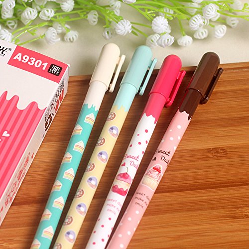 -. Title : Package of 4 Assorted Colors 0.38mm Extra Fine Black Gel Ink Pen with Sweet Desserts Designs