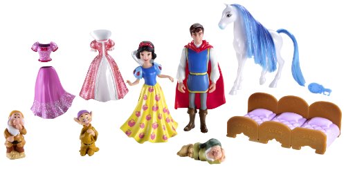 -. Feature : This fairy tale play set includes Snow White and the P.R.Ince / Includes horse, dwarves, and small beds / Features dress up fashions and accessories / The carry case is vinyl and looks like a castle / There are several play pieces included in the set