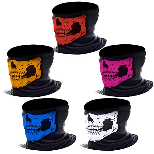 Skull mask: the size of it is approx. 19.67 x 9.8 inch/ 50 x 25 cm; 5 Pieces skull mask in 5 colors, white, red, pink, orange and blue; Stretchy, fit for most people (kids, teens and adults)