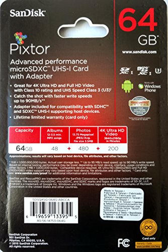 -. Title : SanDisk - Pixtor Advanced 64GB microSDXC Class 10 UHS-3 Memory Card - Red/Gold