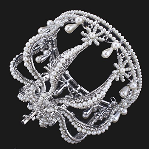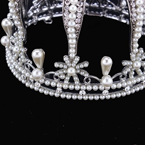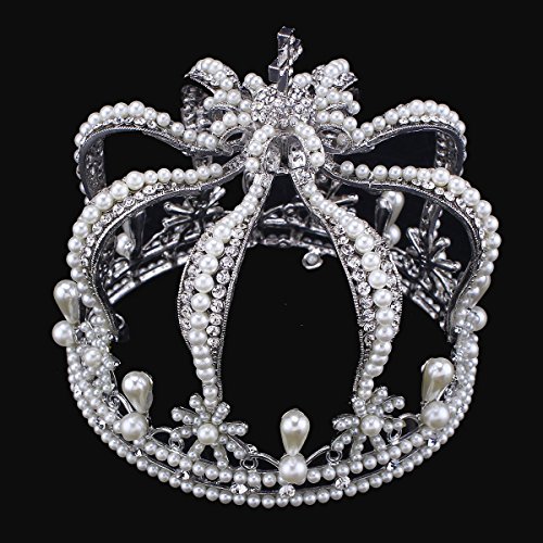 Shining and sparkling crystal rhinestones and pearls on the crown tiara, very impressive and elegant.