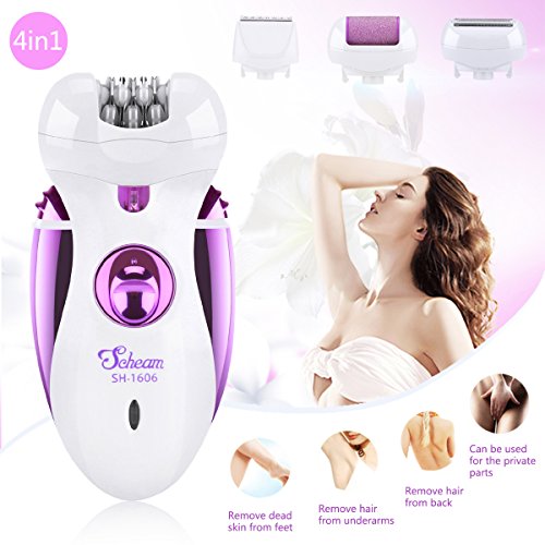 ★ 4-in-1 MULTIFUNCTIONAL DEVICE: Callus Remover---buffs away hard skin in minutes, leaving you with smooth feet and you'll want to show off. Epilator for smooth non-irritating short hair removal. SHAVER---Quick and easy shaving with foil and dual integrated hair trimmers. Clipper---To trip long hairs to prevent unnecessary pain before epilation.