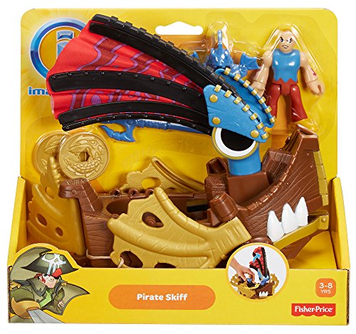 -. Binding : Toy -. Brand : Fisher-P.R.Ice -. EAN : 0746775165062 -. Feature : Skiff transforms into a sea creature - turn a disk to pop out the fins and raise the sail / Press a button to fire the cannon / Includes Pirate Skiff, 2 disks, figure and trident / Imaginext pirate and skiff is great addition to your Imaginext Pirate collection / Out on the open sea, there's a different adventure to dream up every time your child plays -. IsAdultProduct : 0 -. ItemPartNumber : Fisher-P.R.Ice -. Label : Fisher P.R.Ice -. LegalDisclaimer : Ages 3-8 yrs -. Manufacturer : Fisher P.R.Ice -. Model : X7659 -. MPN : Fisher-P.R.Ice -. PackageQuantity : 1 -. PartNumber : Fisher-P.R.Ice -. ProductGroup : Toy -. ProductTypeName : TOYS_AND_GAMES -. Publisher : Fisher P.R.Ice -. Studio : Fisher P.R.Ice -. Title : Fisher-P.R.Ice Imaginext Pirate Skiff -. UPC : 885152420728 -. Warranty : No Warranty