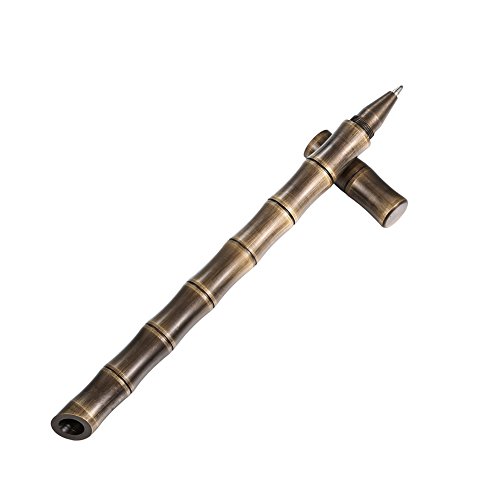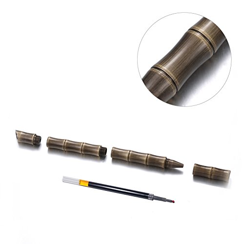 S-WEKA Writing pen Handmade bamboo brass pen outdoor tactic brass self-defense pen(bronze) +Gel Ink Refills(pack of 10)