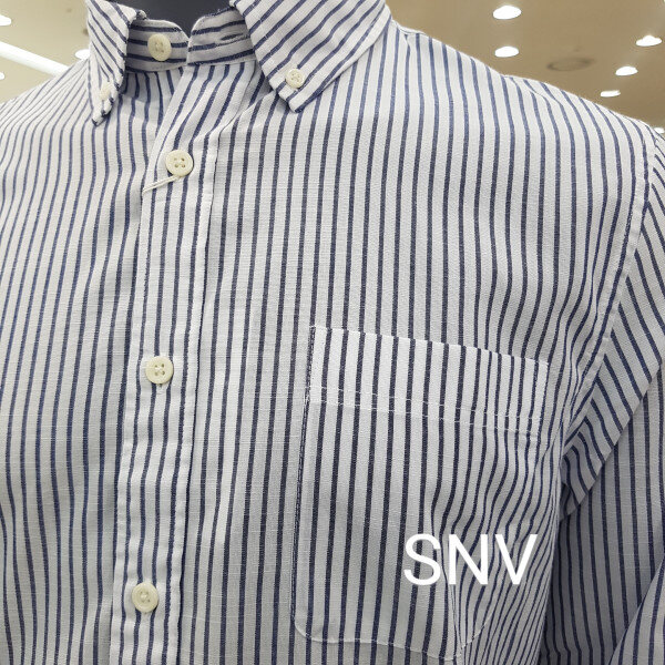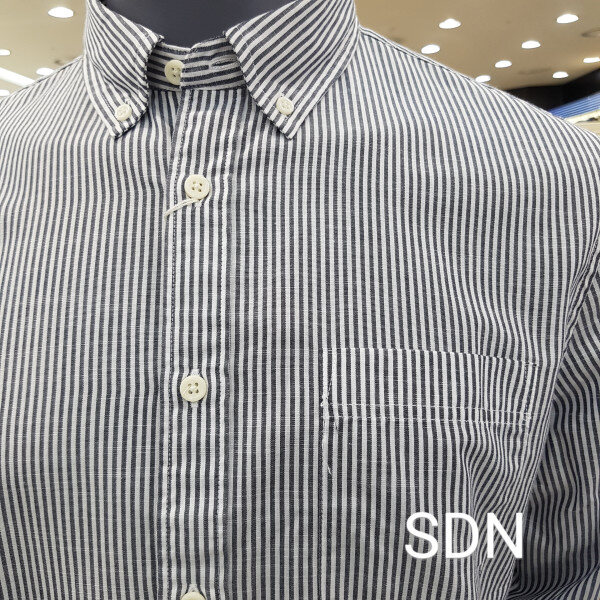 남성 코튼 혼방 간절기 스트라이프셔츠입니다 소재가 얇아 지금 어중간한 날씨에 가볍게 입기 좋은 스타일입니다