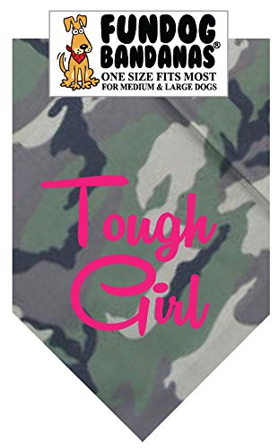 -. Binding : Misc. -. Brand : FunDog Bandanas -. Color : Green Camouflage -. EAN : 0083351960728 -. Feature : Cute! / Fun! / Affordable! / Makes a great gift! / 22x22x31inches -. Label : The Dog Perk Corporation -. Manufacturer : The Dog Perk Corporation -. MPN : Fun-6907 -. PackageQuantity : 1 -. PartNumber : Fun-6907 -. ProductGroup : Pet Products -. ProductTypeName : PET_SUPPLIES -. Publisher : The Dog Perk Corporation -. Size : One size fits most for medium to large dogs -. Studio : The Dog Perk Corporation -. Title : BANDANA - Tough Girl for Medium to Large Dogs - Green Camouflage -. UPC : 083351960728