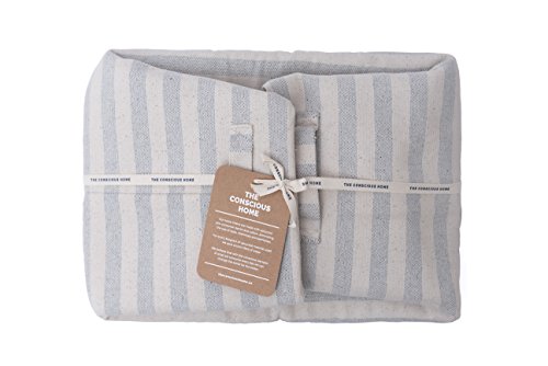 Eco Luxury Cotton Storage Basket, Rectangular 15x10x9.5 in. Striped. Made from Upcycled Denim and cotton for storage and organization