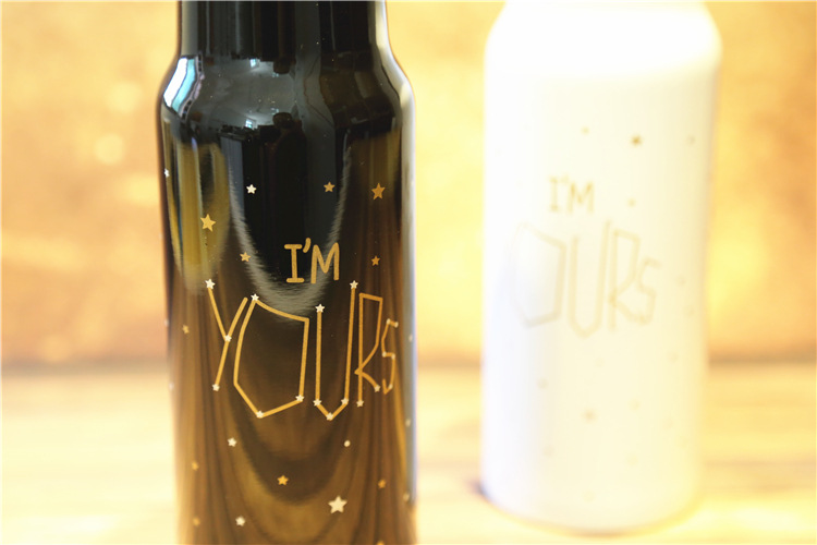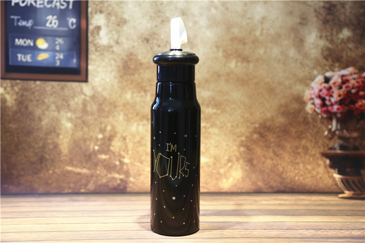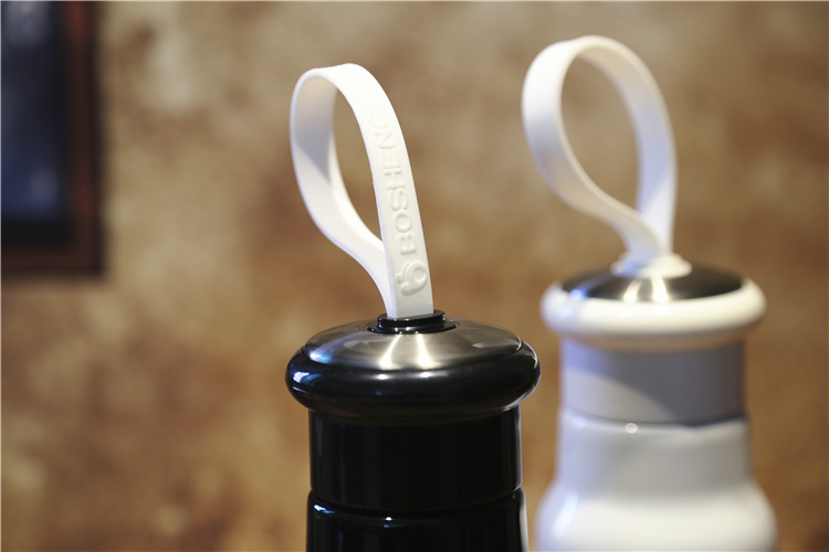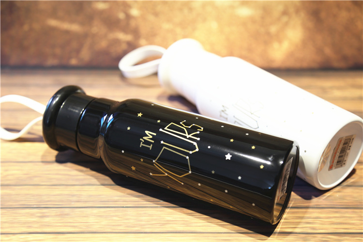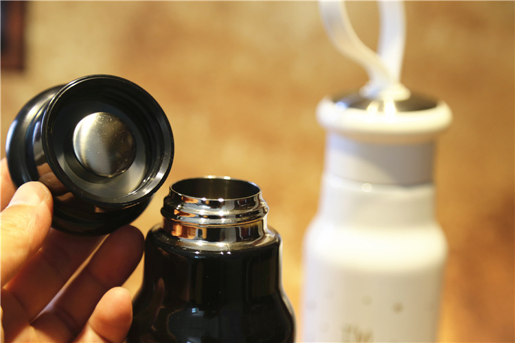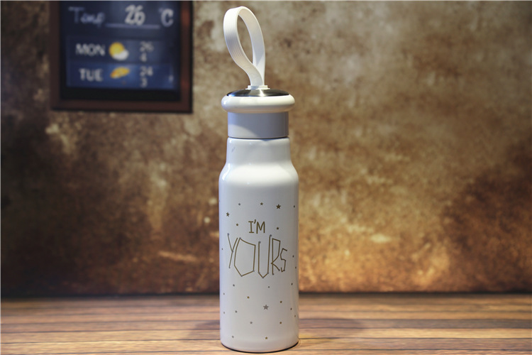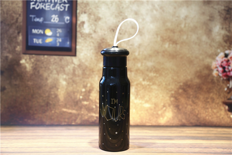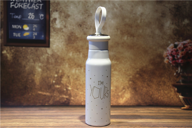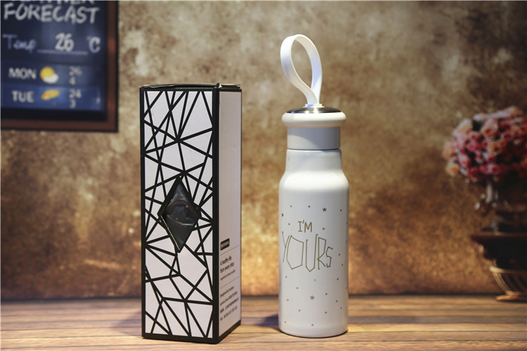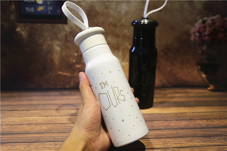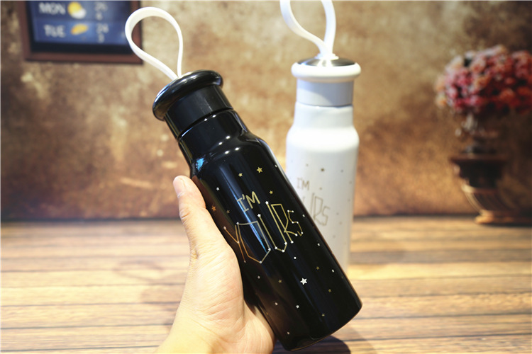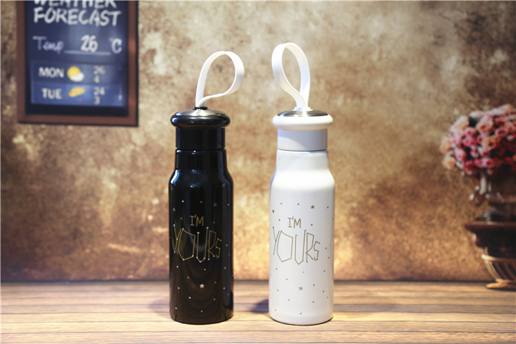 创意黑白不锈钢保温杯男女生情侣时尚提绳水杯学生运动便携随手杯