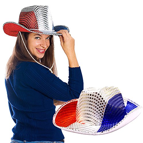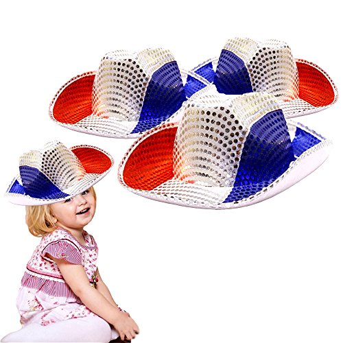 -. Binding : Toy -. Brand : Toy Cubby -. EAN : 0641938542639 -. Feature : 1 piece 4th of July Patriotic American Sequin Cowboy Hat. / Measures 8 x 7 ½ inches with chin strap installed to prevent from falling. / Flashing sequined hat with American color design. / Perfect to wear during 4th of July the Independence day or any patriotic holidays and parties. / Durable, made of high quality materials and fits well with kids and adults. -. IsAdultProduct : 0 -. ItemPartNumber : TC183 -. Label : Toy Cubby -. Manufacturer : Toy Cubby -. MPN : TC183 -. PackageQuantity : 1 -. PartNumber : TC183 -. ProductGroup : Toy -. ProductTypeName : TOYS_AND_GAMES -. Publisher : Toy Cubby -. Studio : Toy Cubby -. Title : Toy Cubby Flashing 4th of July Patriotic American Sequin Cowboy Hat -. UPC : 641938542639