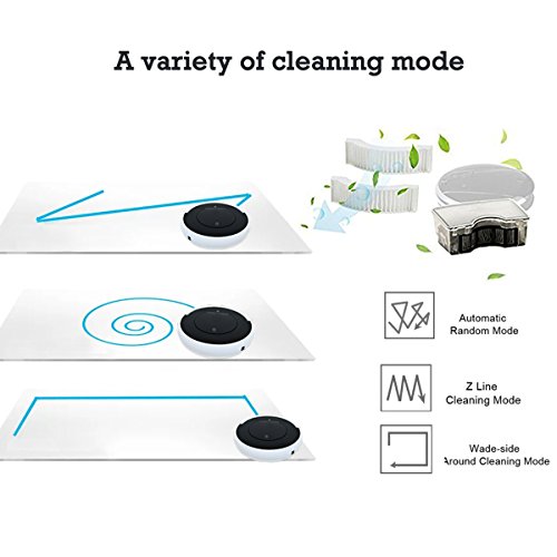 Work Modes: 3-Point Cleaning System, automatic random mode, z line cleaning mode and wade-side around cleaning mode. A redesigned rolling brush- reduces trapping rugs. two side brushes, high suction to ensure a thorough clean.