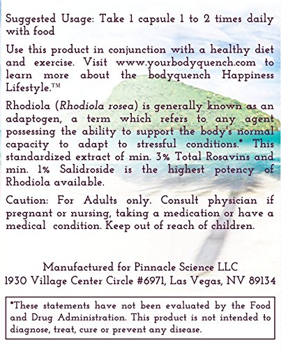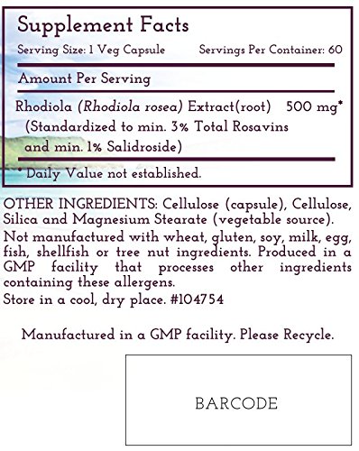Rhodiola - High Potency 500 mg per Serving – Standardized Min. 3% Rosavins and Min. 1% Salidrosides, 60 Veg Capsules