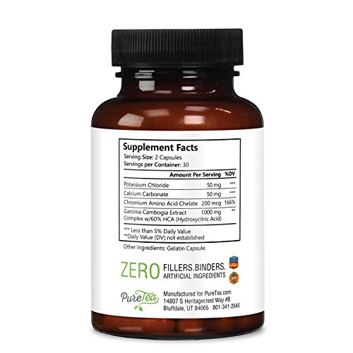 PureTea Garcinia Cambogia Weight Loss Formula is an all-natural Garcinia Cambogia Extract with 60% HCA (Hydroxycitric Acid). Our garcinia cambogia is made without fillers, binders, additives, or artificial ingredients - just 500mg of potent garcinia cambogia fruit extract with essential minerals, in an easy-to-swallow softgel.