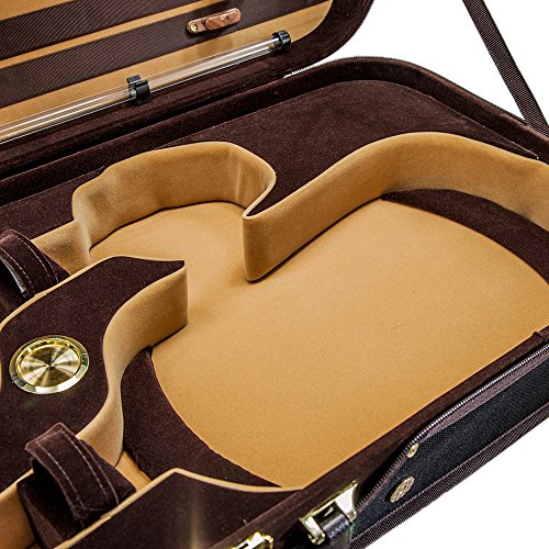 -. Feature : Black canvas exterior/ velvet interior / Full length music pocket with strong zippers / Hygrometer; four bow holders; string tube / Shoulder strap; backpackable / 8 lbs (3.6 kg)