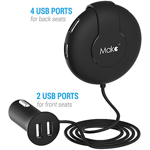 -. Feature : Stylish and Compact. Ample charging capacities without clutter. / Safe and powerful. Provides the total output 9Amp, seamlessly charges 2 front seat devices and 4 backseat devices simultaneously at full speed, fused to provide extra safety. / Good flexibility. With 5 feet cable length, backseat passengers can reach it with ease to watch movies and play games on long road trips. / Smart Charging. Built-in integrated circuits adapt to the power requirements of your devices and charge at the highest amperage possible, each up to 2.4A. / Protects Your Devices. Designed with your safety in mind to provide over-current, over-heating, over-voltage and short-circuit protection