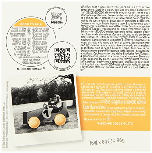 -. Feature : Feines Aroma durch schonende Röstung / Unverkennbarer Geschmack / Ein milder Kaffee mit zarter Crema / Röstgrad: 3 von 10 / Entdecken Sie die Nescafé Dolce Gusto Vielfalt mit vielen verschiedenen Sorten!