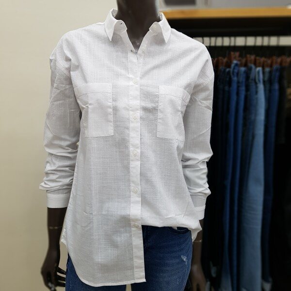 기본형 오버핏 솔리드 셔츠로 투포켓의 디테일로 캐주얼하고 세련되게 연출가능하며 힙을 덮는 기장감으로 편하게 착용 가능한 제품입니다.