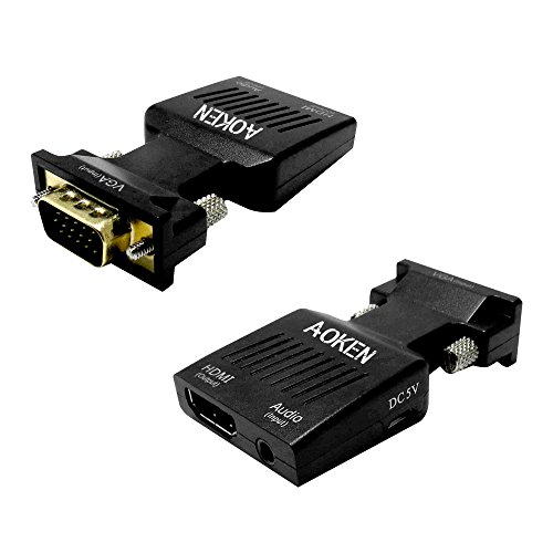 -. Title : Aoken VGA to HDMI Converter Adapter for TV, Computer, Projector, with Audio Cable and USB Cable, HD Connector Converter, Plug and Play with Portable Size