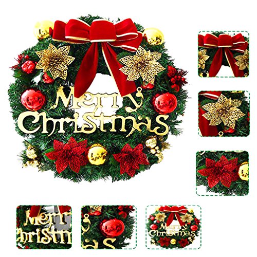 - 🎄🎄【YOU WILL LOVE VEMEE CHRISTMAS WREATH】: multi-colored24” Christmas wreath is decorated with gold bristles, pine cones, and red berries. Christmas wreath, fantastic artificial quality to ensure your decoration looks beautifully in this Christmas.dding more Christmas atmosphere in you house reminds everyone arriving at your home what Christmas is all about.