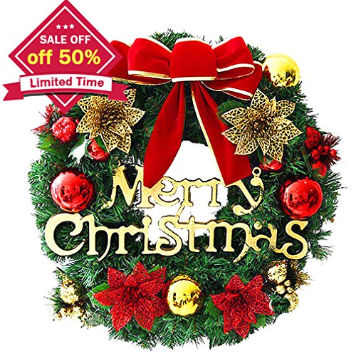 - 🎄🎄【ESSENTIAL WREATH FOR YOU】: Christmas is approaching, Pine Wreath as decoration for indoor and outdoor Create a festival atmosphere. Get ready for Christmas with cute Christmas Wreath Garland? Exquisite design with cones, berries, bristles, bowknot with beautiful green Pine definitely a good stuff for Christmas decoration.