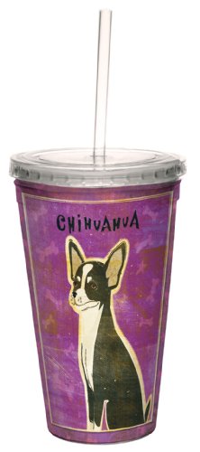 Tree-Free Greetings cc34074 Black and White Chihuahua by John W. Golden Artful Traveler Double-Walled Cool Cup with Reusable Straw, 16-Ounce