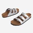 블링블링한 실버컬러에 쓰리 스트랩으로 포인트를 준 슬리퍼 입니다. 발을 넓게 감싸주어 편안하며 사이드 라인의 로고장식이 멋스러운 아이템 입니다.