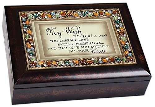 -. Title : My Wish for You Inspirational Italian Style Burlwood Finish Decorative Jewel Lid Musical Music Jewelry Box - Plays Edelweiss by Cottage Garden
