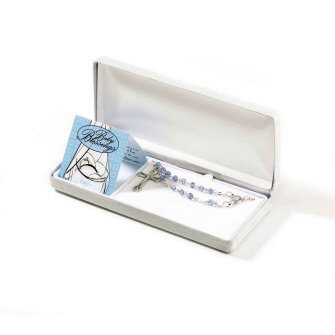 -. Binding : Baby Product -. Brand : Dicksons Gifts -. Color : Blue -. Department : babies -. EAN : 0714611117575 -. Feature : Sapphire-colored fire polished crystal / Comes in nice gift box / Comes with sentimental card / Card inside reads: Of all Gods blessings big and small a baby is the best of all; a precious soul to love and raise, to guide and nurture in Gods ways. A precious life to shape and mold, whose tiny hands are yours to hold; a life entrusted to your care to bathe in love -. IsAdultProduct : 0 -. Label : Dicksons -. Manufacturer : Dicksons -. MPN : 32-0792 -. PackageQuantity : 1 -. PartNumber : 32-0792 -. ProductGroup : Baby Product -. ProductTypeName : BABY_PRODUCT -. Publisher : Dicksons -. Studio : Dicksons -. Title : Baby's First Rosary- Sapphire Fire Polished Crystal -. UPC : 714611117575