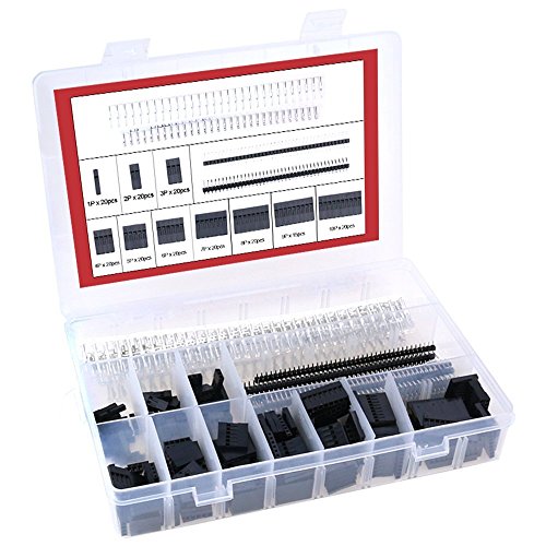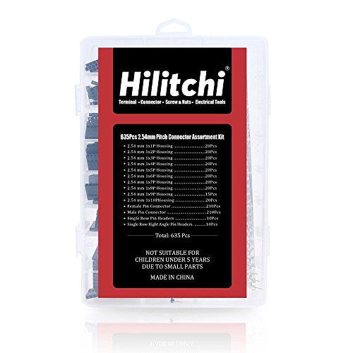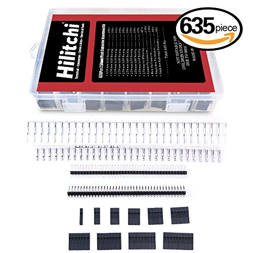 Hilitchi 635 Pcs 40 Pin 2.54mm Pitch Single Row Pin Headers,Dupont Connector Housing Female,Dupont Male/Female Pin Connector Kit