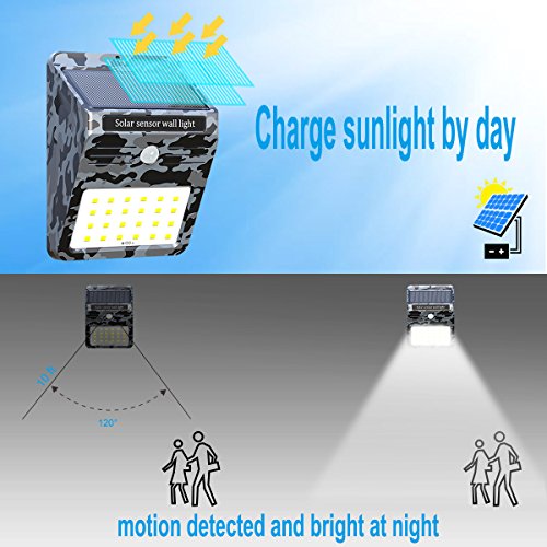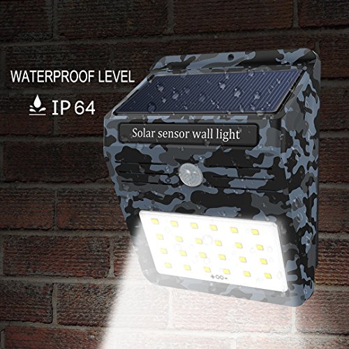 - ✹【EXCLUSIVE CAMOUFLAGE STYLE DESIGN】-We design the camouflage style on this solar wall light, to make It more attractive. This is the only camouflage style solar light on the market. The light has only on / off mode, no dim mode for increasing product life span. No water infiltration into inside when it rains,means enhanced weatherproof function