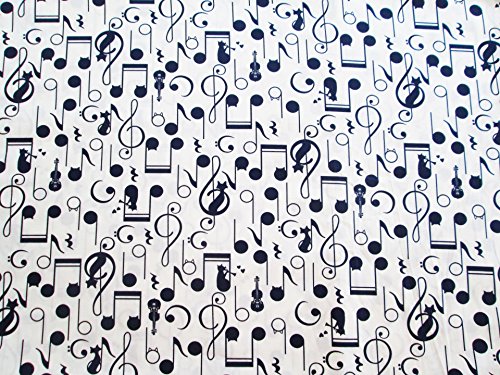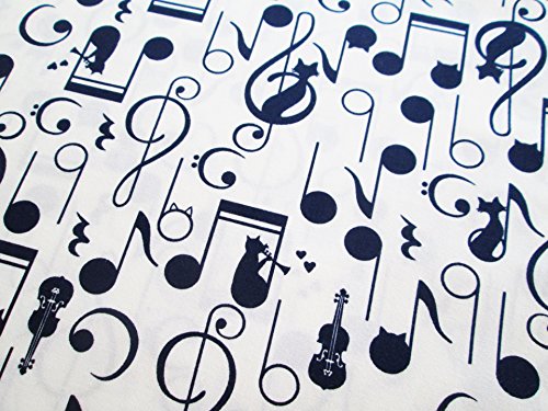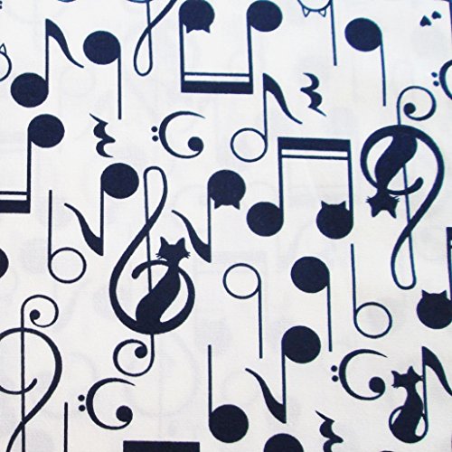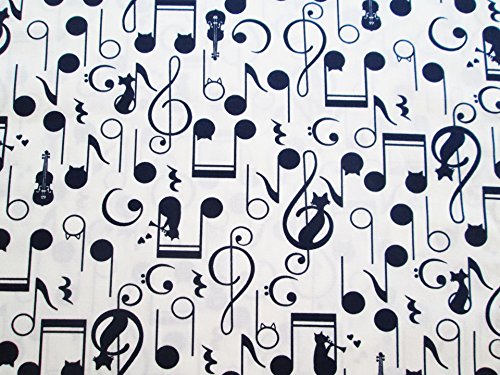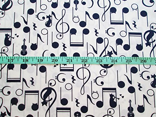 Music Lover Black White Cat Melody G Clef Song on White Fabric By the Yard (CT690)