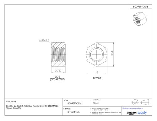 Steel Heavy Hex Nut, Zinc Plated Finish, Class 8, ISO 4033, Metric, M20-2.5 Thread Size, 30 mm Width Across Flats, 20 mm Thick (Pack of 5)