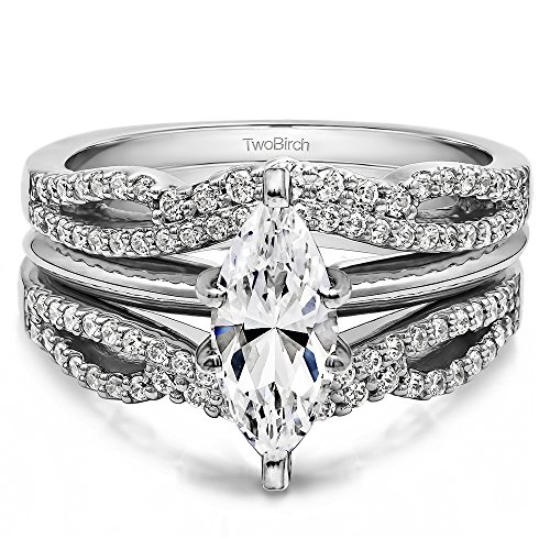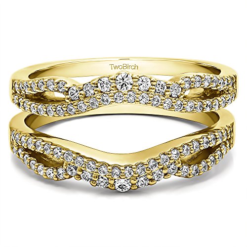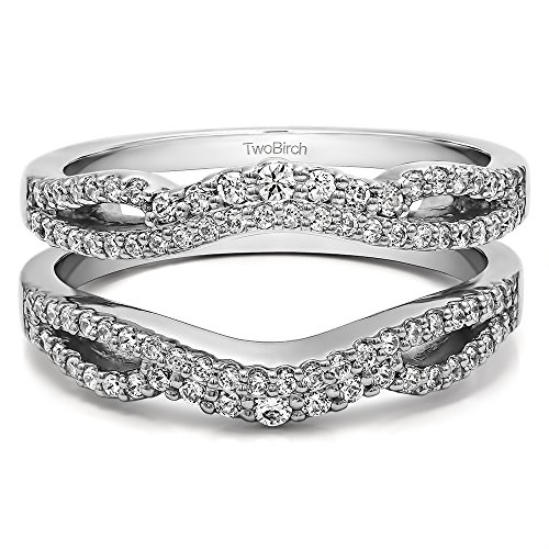-. Feature : Search TB-GUARD-0110 on Amazon.com search bar above to see this ring enhancer with all of its variations. All TwoBirch ring guards and ring wraps are available in platinum, gold , silver, diamond moissanite and cz. / Item in image is smaller than it appears. It is enlarged to show details. / To ensure a perfect fitting ring guard please see the TwoBirch Molding Kit, TB-KT-0001. Mold kit will ensure your ring guard wrap will fit flawlessly. / Ring guard enhancers can feel tight because of how wide they make your bridal set. We recommend a 1/4 or 1/2 size larger to ensure a comfortable fit. / Message us to have this ring guard made as two separate bands at no additional charge. Hassle free 30 day, no questions asked return policy.