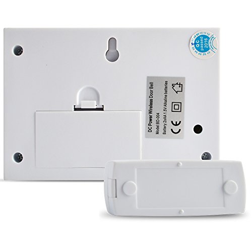 -. Feature : 12V 23A ALK battery for the push button remote is INCLUDED. Wireless doorbell operating at 320 feet in open air / WIRELESS & AA BATTERY: This doorbell is totally wireless and use 2 AA batteries. No more annoying wirings and cables / BROAD USAGE: Ideal for homes, office buildings, hotels, factories etc.; it can also serve as a paging device, which is especially useful as an in-home emergency alert for the elderly / Unique and elegant design, 1 remote button transmitter and 1 plug-in receivers., you can hear ring anywhere of your home, on the second floor, garage, or basement etc. / EASY INSTALLATION & 24 CHIME TONE: Its so easy to install with 24 customizable chime tones to choose from.