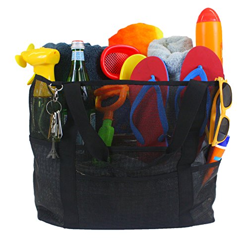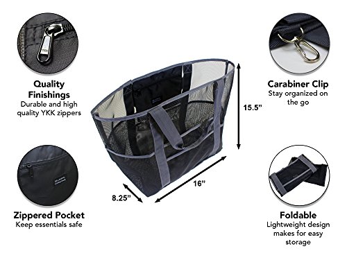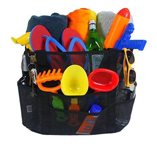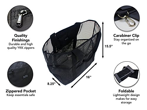 This tote is the perfect bag for a day at the beach, pool or a picnic in the park! It even doubles as a grocery bag! This bag is stronger and more durable than ordinary reusable shopping totes. It can also be wiped clean and the lightweight mesh allows sand, water and dirt to fall through so you never bring messes home! Plus, comfortable straps allow for this bag to be carried easily. 0