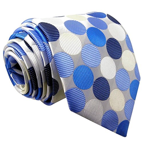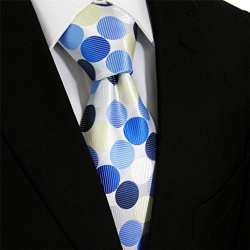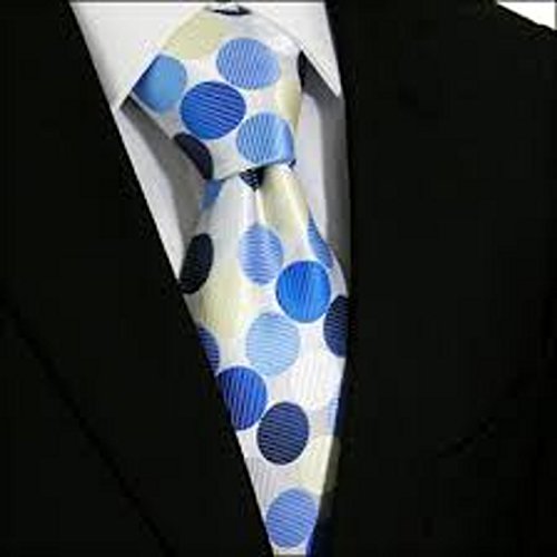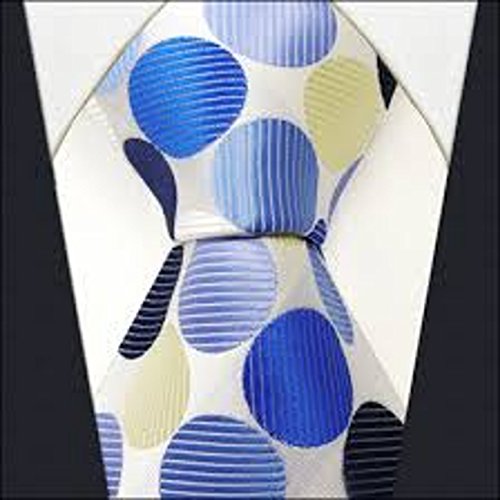 Classic Corporate Executive Wardrobe Accessory, Navy Blue , Sky Blue, Midnight Blue and Beige Polka Dot 3.4" Handmade Silk Classic Jacquard Men's Tie (Necktie)