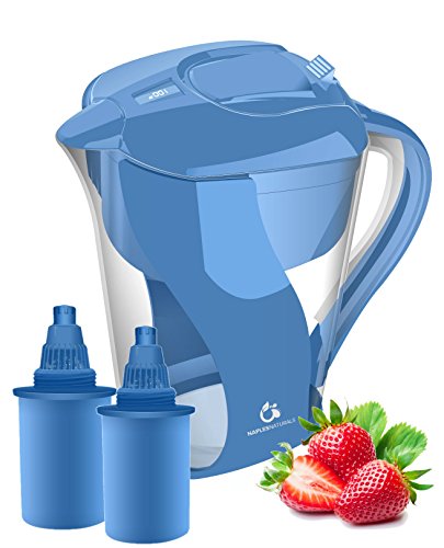 Naples Naturals AOK109BLUX2F Alkaline Water Pitcher with Two 6-Stage Carbon Water Filter, Removes Chlorine and Contaminants plus Increases pH, Blue