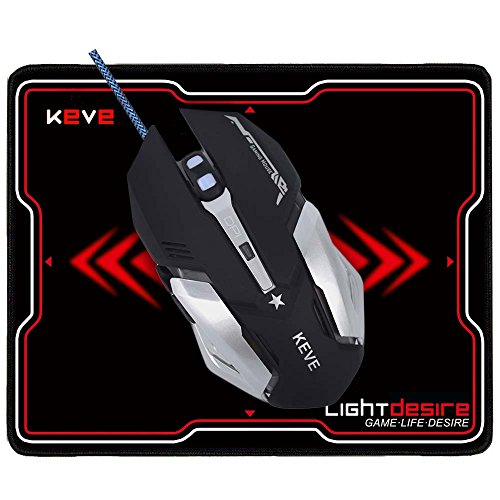 -. Binding : Video Game -. Brand : LIGHTDESIRE -. Feature : ❶ 4 DPI ADJUSTABLE:Precision control with 4 DPI settings: 1200/1600/2400/3200;Polling Rate:500Hz;Suitable for games and design work / ❷ ERGONOMIC DESIGN:Fits naturally in your hand with no cramping after extended gaming or work sessions / ❸ 6 BUTTONS DESIGN: For superior productivity and efficiency,with forward and backward button,more convenient to scan the web-page and files / ❹ INTELLIGENT CONNECTIVITY: No need to code, plug & play (No need CD driver).Metal bottom more stable when mouse moving,style more fashion / ❺ 4 COLORS LED LIGHT:Cycle breathing or you can turn it off -. HardwarePlatform : PC/Mac -. Label : LIGHTDESIRE -. Manufacturer : LIGHTDESIRE -. Model : KEVE -. MPN : LD-KV001 -. OperatingSystem : Macintosh -. PackageQuantity : 1 -. PartNumber : LD-KV001 -. Platform : Mac / Windows -. ProductGroup : Video Games -. ProductTypeName : VIDEO_GAME_ACCESSORIES -. Publisher : LIGHTDESIRE -. Studio : LIGHTDESIRE -. Title : Gaming Mouse 6 Buttons 3200 DPI LED Light Breathing Changing Adjustable High Precision With Mouse Pad by LIGHTDESIRE Upgraded Version